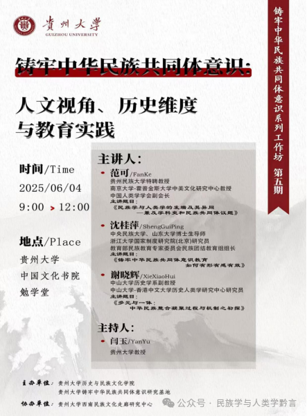 2025年6月4日上午,贵州大学铸牢中华民族共同体意识系列工作坊第五期学术论坛在贵州大学中国文化书院勉学堂成功举办。