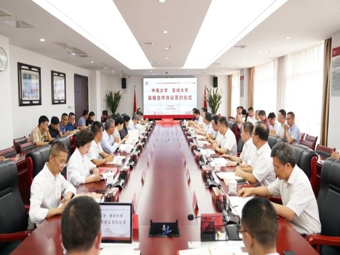 7月20日下午,中南大学—贵州大学战略合作协议签约仪式在我校西校区贤正楼1号楼311会议室举行。我校党委书记杨未、校长宋宝安院士、党委副书记张洁、副校长张大林、副校长王锦荣,中南大学校长李建成院士、校学术委员会主任赵中伟院士、副校长郭学益、党委副书记李景升、党委副书记付刚华出席签约仪式,省教育厅、贵阳市科技局及我校相关职能部门负责人参加签约仪式。仪式由宋宝安主持。