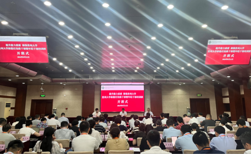 8月11日上午,培训班举行开班式,国家教育行政学院副院长冉茂华,贵州大学党委常委、副校长王锦荣出席,会议由贵州大学副校长王旭主持。冉茂华在致辞中指出,此次培训的举办,充分反映了贵州大学党委对干部队伍建设的高度重视、对新任职干部和年轻干部成长发展的关心关爱,希望学员们珍惜来之不易的学习机会,深入学习习近平新时代中国特色社会主义思想的科学体系、丰富内涵、精神实质和实践要求,提高政治站位、提升履职能力、强化责任担当、勇担时代使命,为教育强国建设作出新的更大贡献。王锦荣在讲话中介绍了举办此次培训的目的和安排,并要求全体学员认真参加培训,增强政治意识、提升政治能力,增强学习意识、提升业务能力,增强责任意识、提升履职能力,增强纪律意识、提升抵腐定力,把学习成果转化为指导实践、推动工作的实际行动。