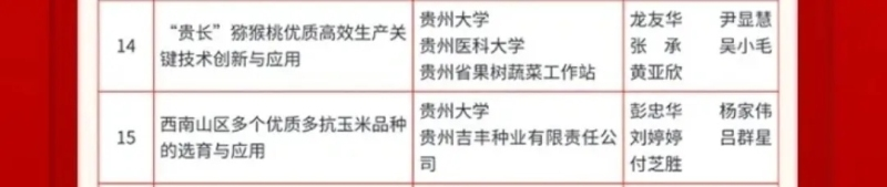11月21日,贵州省科技大会暨科学技术奖励大会召开。大会颁发2023年度贵州省科学技术奖121项。其中,以贵州大学为第一完成单位的项目获省自然科学奖一等奖1项,省自然科学奖二等奖3项,省自然科学奖三等奖4项,省科学技术进步奖一等奖2项,省科学技术进步奖二等奖4项,省科学技术进步奖三等奖7项。