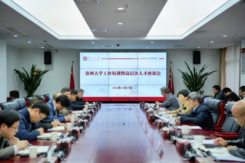 11月25日,贵州大学工作培训暨高层次人才座谈会在我校西校区举行,校长宋宝安院士,校党委副书记张洁,副校长张大林、陈祥盛、吴攀出席会议,各部门、学院相关人员参加。会议由张洁主持。