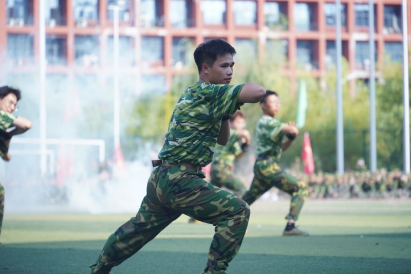 分列式结束后,参训学生依次进行了心理健康操、倒功操、应急棍、匕首操、擒敌拳、刺杀操等军事科目展示。他们目光如炬,身姿矫健,每一次转身、每一次出拳都透露出坚定与果敢。这份精气神,正是贵州大学学子们在军训中磨砺出的宝贵财富,它不仅代表了青春的力量,更预示着他们在未来的道路上将勇往直前,无惧挑战。
