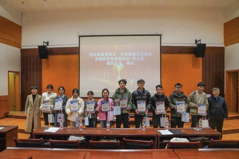 随后,宋宝安、张洁为获得阳明学院晨跑运动“周之星”获得者颁发证书和奖品。
