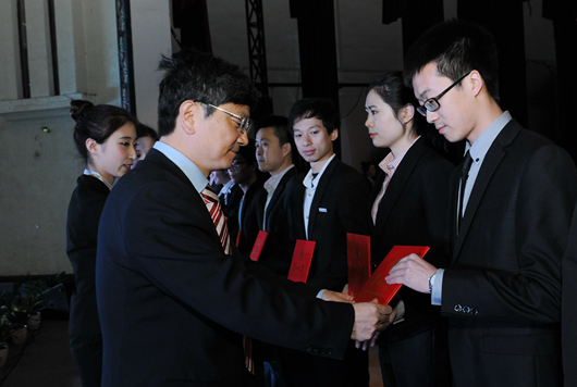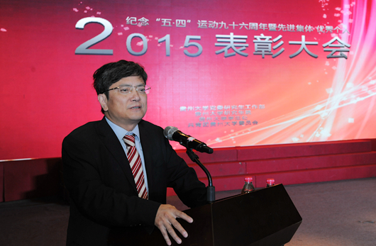 校党委副书记骆长江宣读表彰本科生先进集体和优秀个人的决定,对人文学院新闻131班团支部等35个优秀团支部、杨丽莎等792名优秀共青团员、郭洋等442名优秀共青团干部、吴璇等59名优秀志愿者干部、易崇勇等96名优秀志愿者、人文学院学生会等10个“十佳院学生会”、艺术学院青年志愿者协会等6个优秀志愿者组织、田亚鑫等94名十类“十佳大学生”、邓琳等9名优秀团务工作者以及外国语学院团委等6个“五四红旗团委”进行了表彰,校领导杨伟民、骆长江、汪海波、谢田凯分别为获奖代表颁奖。
