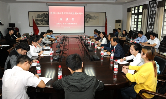 10月27日上午,纪念红军长征胜利80周年座谈会在行政楼第一会议室召开。校党委副书记骆长江、杨未出席座谈会。相关单位代表及各学院教师、学生代表参加会议。杨未主持座谈会。