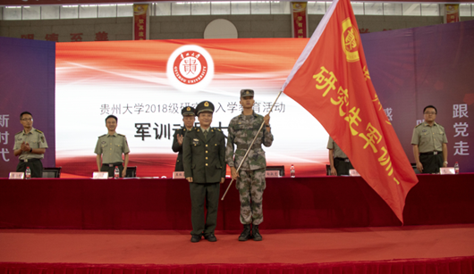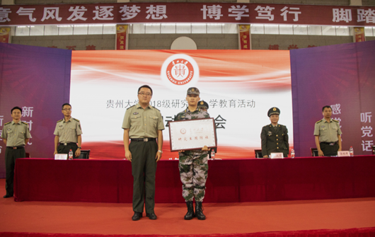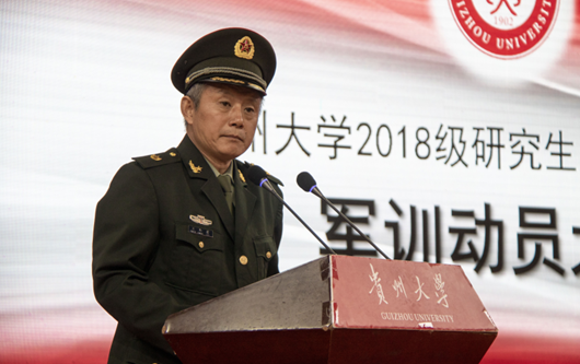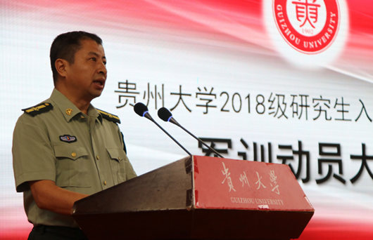 学生处处长、武装部部长兼军训师副政委郭林桦宣读了《关于成立贵州大学2018级研究生军训独立团的通知》。