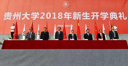 王锦荣教授作为教师代表发言,他欢迎同学们来到贵大求学。他说,在大学成长成才的重要阶段,要学会爱国;学会奋斗;学会做人;学会学习。期待同学们在贵州大学学到新知识,锻炼新本领,取得新成绩,用实际行动践行贵州大学“明德至善,博学笃行”的校训。