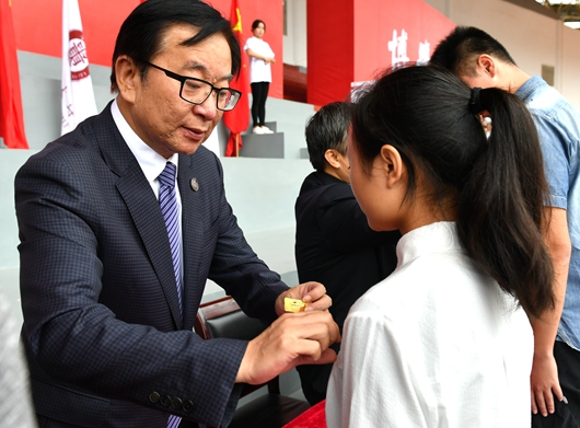 庄重的“开笔之礼”开启求学的新篇章。全体新生正衣冠,行感恩之礼,向父母、老师深鞠一躬,表达自己最诚挚的感谢。校党委书记李建军向新生代表赠送了“品德之笔”、“才能之笔”,意在鼓励同学们能珍惜贵大求学时光,成为德才兼备的贵大人。随后,全体新生郑重地将见证学校一百多年风雨历程和辉煌成就、凝聚着一代代贵大人赤子情怀和庄严责任的校徽佩戴在胸前,从此正式成为贵大一员、进入人生崭新阶段。