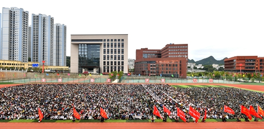 鲜艳的旗帜迎风飘扬,“明德至善,博学笃行”的校训赫然屹立,万余名学子整齐划一,一张张青春洋溢的脸庞期待着这一场神圣的仪式。