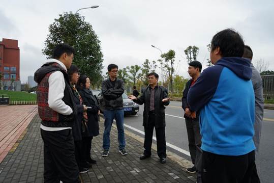 王校长一行先后来到新老校区连接部、机械工程学院、建筑与城市规划学院后小山以及工程实训中心附近小广场等位置,仔细考察了场地位置、大小、构造等。陪同人员纷纷从自己的专业角度,对各个位置的优缺点进行了分析,并对选址和布展提出了一系列建议。