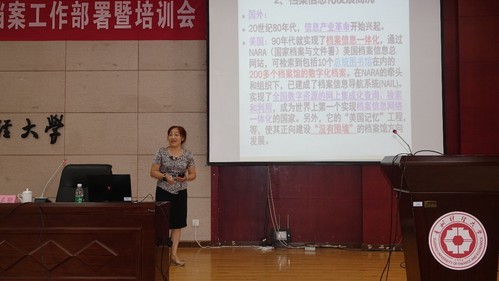 2021年7月7日上午,在贵州财经大学举行的“贵州财经大学2021年档案工作部署暨培训会”上,贵州大学档案馆副馆长唐圣琴应邀为全校专兼职档案人员开展专题培训,她以“档案信息化”为题,从档案信息化的含义及发展简况,档案信息化对档案工作的作用,档案信息化建设的核心内容以及展望与体会四个方面,用实例对有关知识进行了较为深入、系统的讲解,同时还结合贵州大学数字档案馆建设的实际,与参会人员分享了贵州大学数字档案馆建设所取得的成果及一些体会。培训内容理论联系实际、重点突出、通俗易懂,使参会人员对档案信息化工作有了较系统、全面的了解,为本校档案信息化工作的开展奠定了一定基础,得到了与会人员的普遍好评。