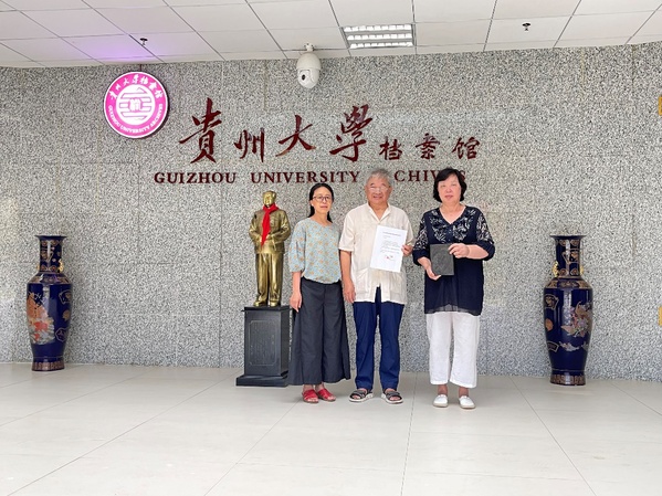 2021年9月23日下午,退休教师穆彪教授来到我馆,将其收藏的国立贵州大学校长张廷休遗物——砚台捐赠校史馆展示。