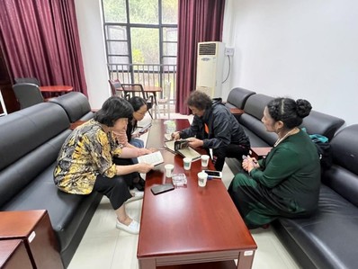 在馆接待室,馆长陈岚及编研室负责人与苏涟夫妇座谈。苏先生简单介绍了父母亲情况及捐赠资料情况和方式。