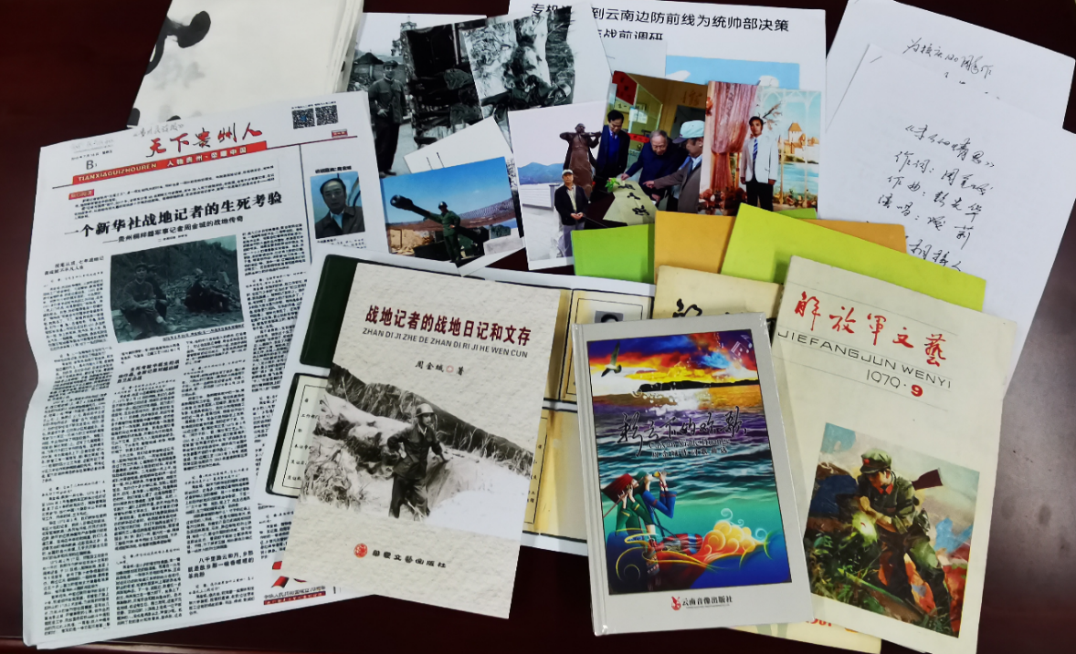此次捐赠,有周金城校友所著《战地记者的战地日记和文存》、作词歌曲选集《彩云下的欢歌》、作曲歌曲选集《蓝花楹》,还有为贵州大学120周年校庆作词歌曲等的手稿,以及他在战地采访时的珍贵老照片等27件,为我们提供了丰富的档案材料。