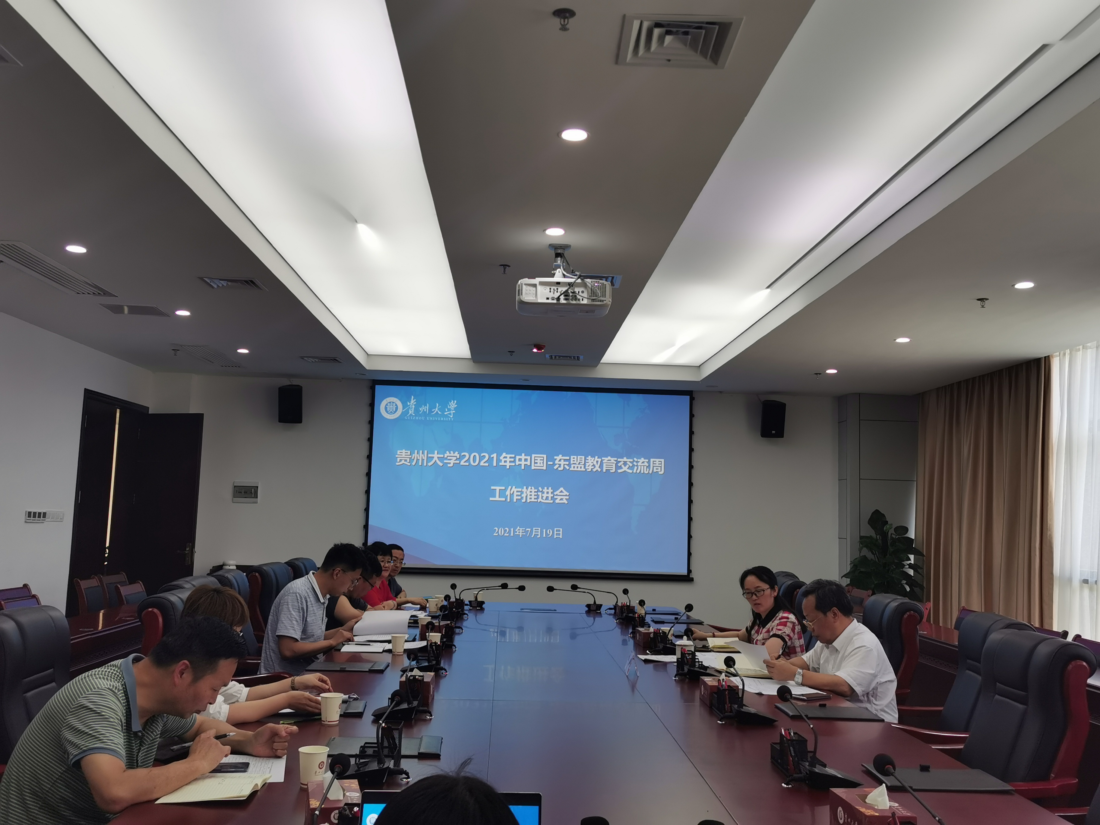 7月19日下午,贵州大学2021年中国-东盟教育交流周工作推进会在贵州大学贤正楼102会议室召开。副校长周少奇教授参加会议,会议由国际交流与合作处处长洪云主持。我院负责人参加了此次会议,并汇报了项目筹备情况、需要协调的问题、暑假期间的工作安排等相关事宜。