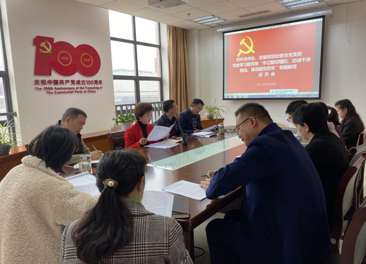 | 对外合作处、发展规划处联合党支部召开 党史学习教育暨“牢记殷切嘱托、忠诚干净 担当、喜迎建党百年”专题教育动员会 |