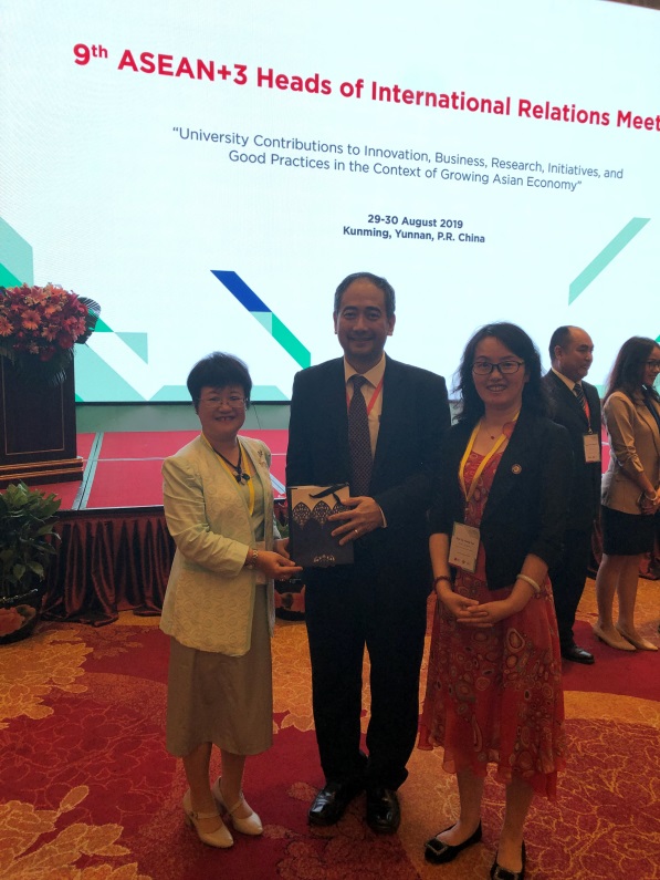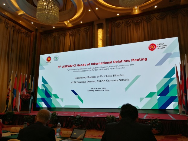 2019年8月29-30日,第九届东盟与中日韩(10+3)大学联盟外事负责人会议在云南大学举行。此次会议由东盟大学联盟(AUN)主办、云南大学承办。本届会议的主题是:亚洲经济增长背景下,大学对开发创新、校企合作、学术研究、科技引领的贡献及成功实践。AUN执行主任查尔迪斯先生及相关负责人,来自东盟和中日韩12个国家的42所著名大学校领导、外事负责人近100名代表参会。我校国际交流与合作处洪云处长、国际教育学院张成霞院长应出席会议。