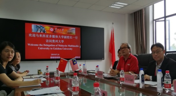 (7)7月24日下午,马来西亚多媒体大学副校长Ho Chin Kuan、创意多媒体学院院长Wong Chee On、国际处长Indahsh Siedek、计算机与信息学院讲师Lee Kian Chin、马来西亚驻华大使馆一秘/教育专员蔡明胜一行到访贵州大学。在双方举行的座谈会上,张成霞院长对马来西亚多媒体大学国际处处长因达萨希德(Indahsah Sidek)提出的关于学生交流等方面的问题进行沟通,力促两校尽快开启学生交流合作先例。