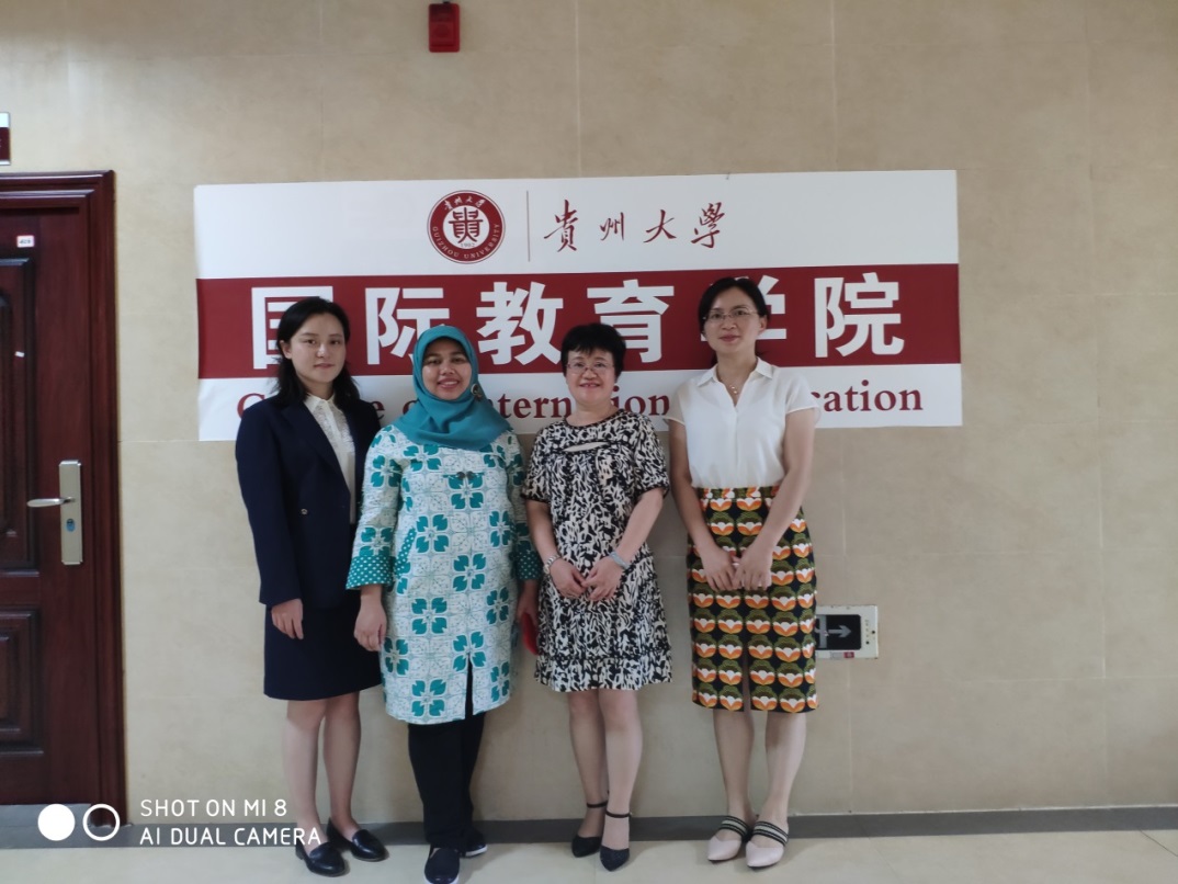 (2)7月23日,在中国-东盟教育交流周组委会秘书处黄自洁陪同下,印度西亚教育与文化部语言教师与师资培训及发展中心负责人傅碧达到访国际教育学院,与张成霞院长进行交流座谈。傅碧达女士详细了解贵州大学招收印尼留学生及对外汉语教学情况,希望与国际教育学院在汉语教学、汉语教师培训、印尼学生来华留学方面进行长期合作。座谈会后,傅碧达女士参观了校园和留学生宿舍,与印尼学生进行亲切交谈,了解他们在贵州大学的学习和生活情况。