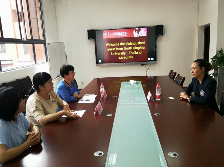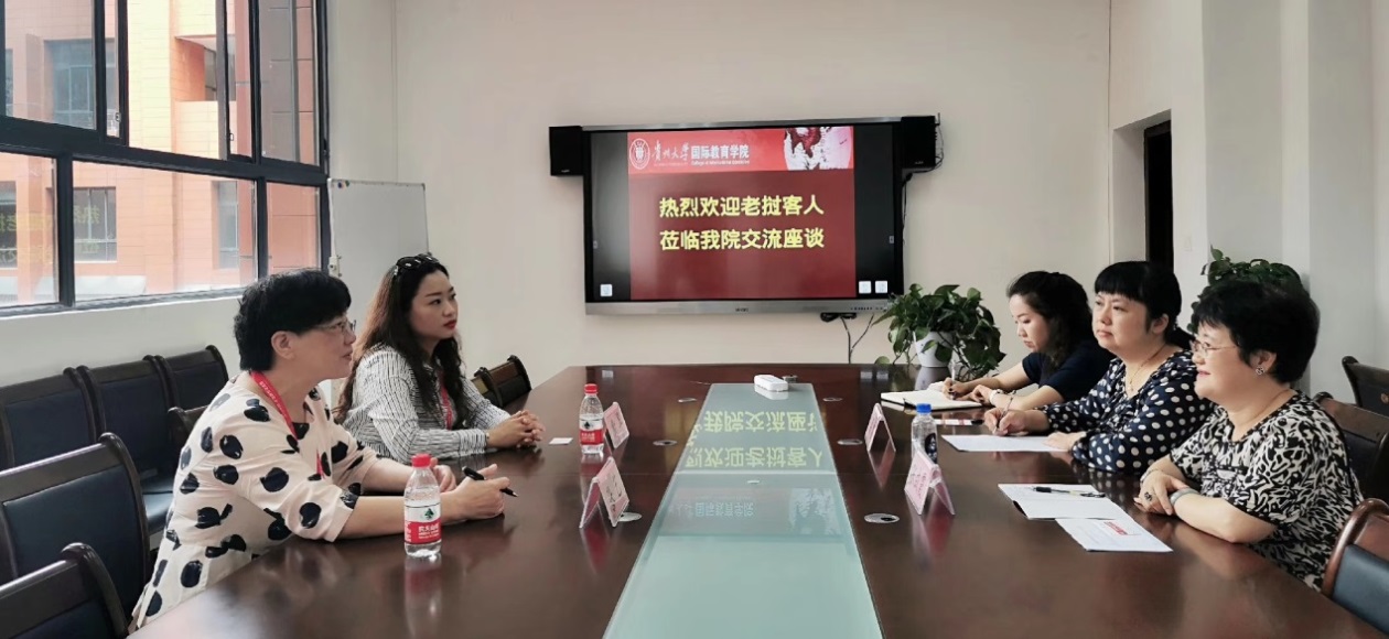 (5)7月24日,泰国北方清迈大学副校长蔡萍萍访问国际教育学院,与张成霞院长、梁雪副院长进行了交流座谈。蔡萍萍副校长了解了北方清迈大学在贵州大学留学学生的学习生活情况,感谢贵州大学对学生的培养、关心及帮助。双方就如何提升项目质量进行了讨论,并希在今后的项目拓展、短期游学等方面开展更加深入的交流与合作。
