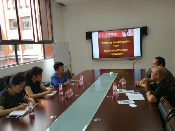 (6)7月24日,印度尼西亚玛拉拿达基督教大学副校长Radiant Victor Imba、计算机学院院长Hapnes Toba 到访贵州大学,期间与国际教育学院、计算机科学与技术学院进行交流座谈。国际教育学院张成霞院长、计算机科学与技术学院副院长龙慧云,就两校计算机学院在师生交流、科研合作、共同举办国际会议方面进行深入沟通。印度尼西亚玛拉拿达基督教大学希望贵州大学协助该校计算机科学领域博士点建设,希望贵州大学派遣相关教师和学者到高校为博士生、硕士生授课,共同指导博士生。2018年我校接受了该校两名本科生到计算机科学与技术学院进行交流学习。双方商定,2010年,两个学院的师生交流力度将扩大,实现双向流动。