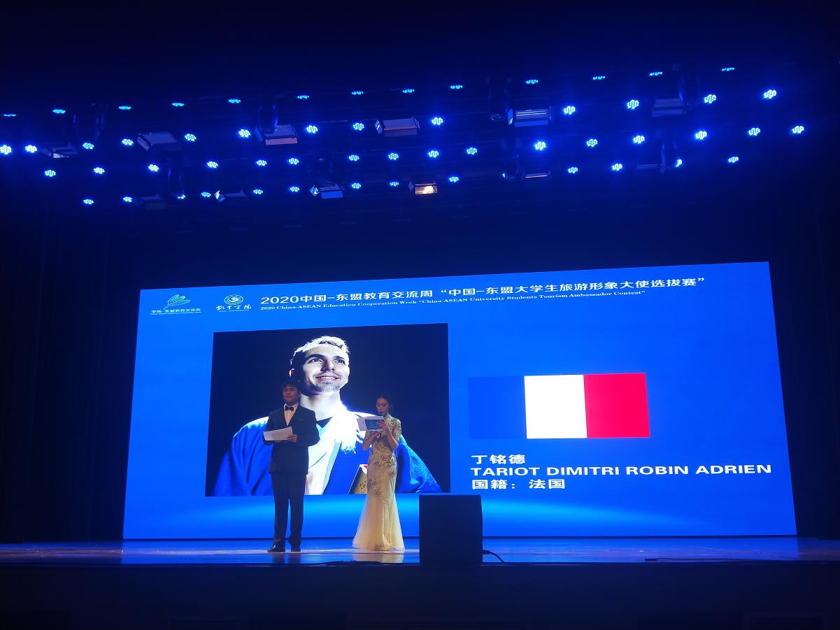 11月6日,2020中国-东盟教育交流周“中国-东盟大学生旅游形象大使选拔赛”决赛在凯里学院举行。我校法国留学生丁铭德、孟加拉国留学生妮鲁均获二等奖。