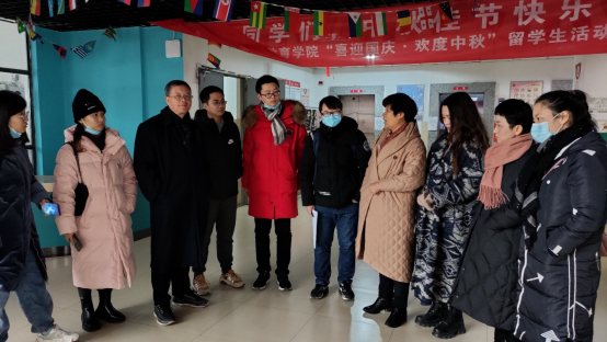 元旦、春节将至,为落实学校“双节”安全工作要求,进一步提高留学生安全意识和疫情防控意识,确保假期在校留学生安全稳定, 12月30日下午,我院党委副书记甘孝琴带领留学生班主任一行10人分三组走访检查了17栋留学生宿舍。