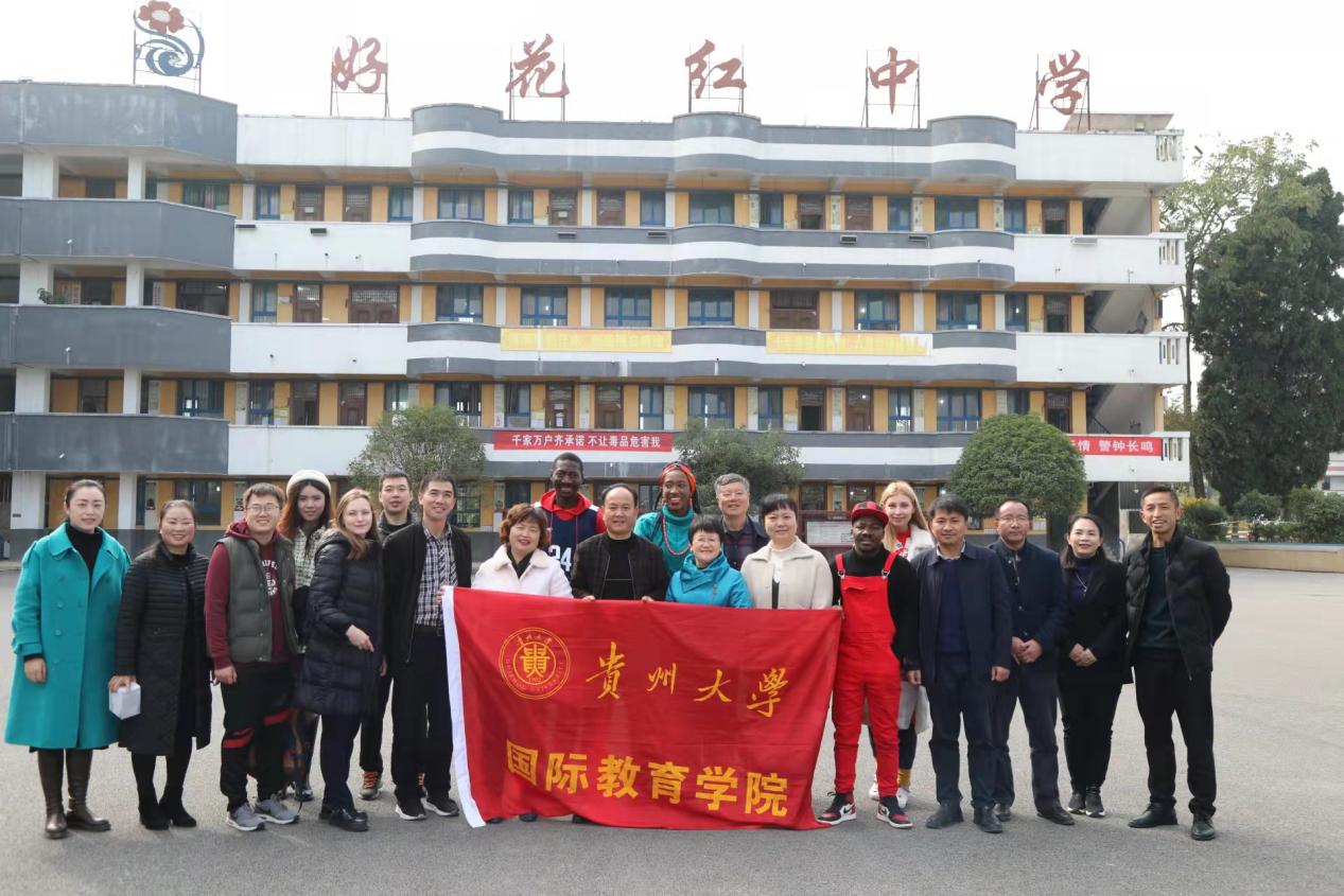 为深入贯彻落实习近平总书记关于全面推进乡村振兴的重要论述,牢牢把握抓党建促乡村振兴的目标要求和方法路径,2021年11月26日,贵州大学国际教育学院组织师生代表15人赴惠水县好花红镇好花红中学、辉岩小学开展“教育助力乡村振兴”活动。活动由学院党委书记晋克俭、院长张成霞带队。参加活动的有副院长梁雪及各科室代表等10名教职工、来自俄罗斯的缇娅娜、尼日利亚的刘雨佳等5名不同国籍的留学生。