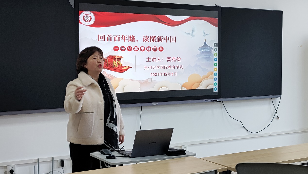 2021年12月3日下午5时许,贵州大学明正楼401智慧教室掌声绵绵不断,一堂别开生面的国情教育课正如火如荼的举行。国际教育学院党委书记晋克俭以《回首百年路,读懂新中国》为主题,向20多名来自不同国家的贵州大学的留学生讲述了中国共产党带领中国奋进的百年历程。