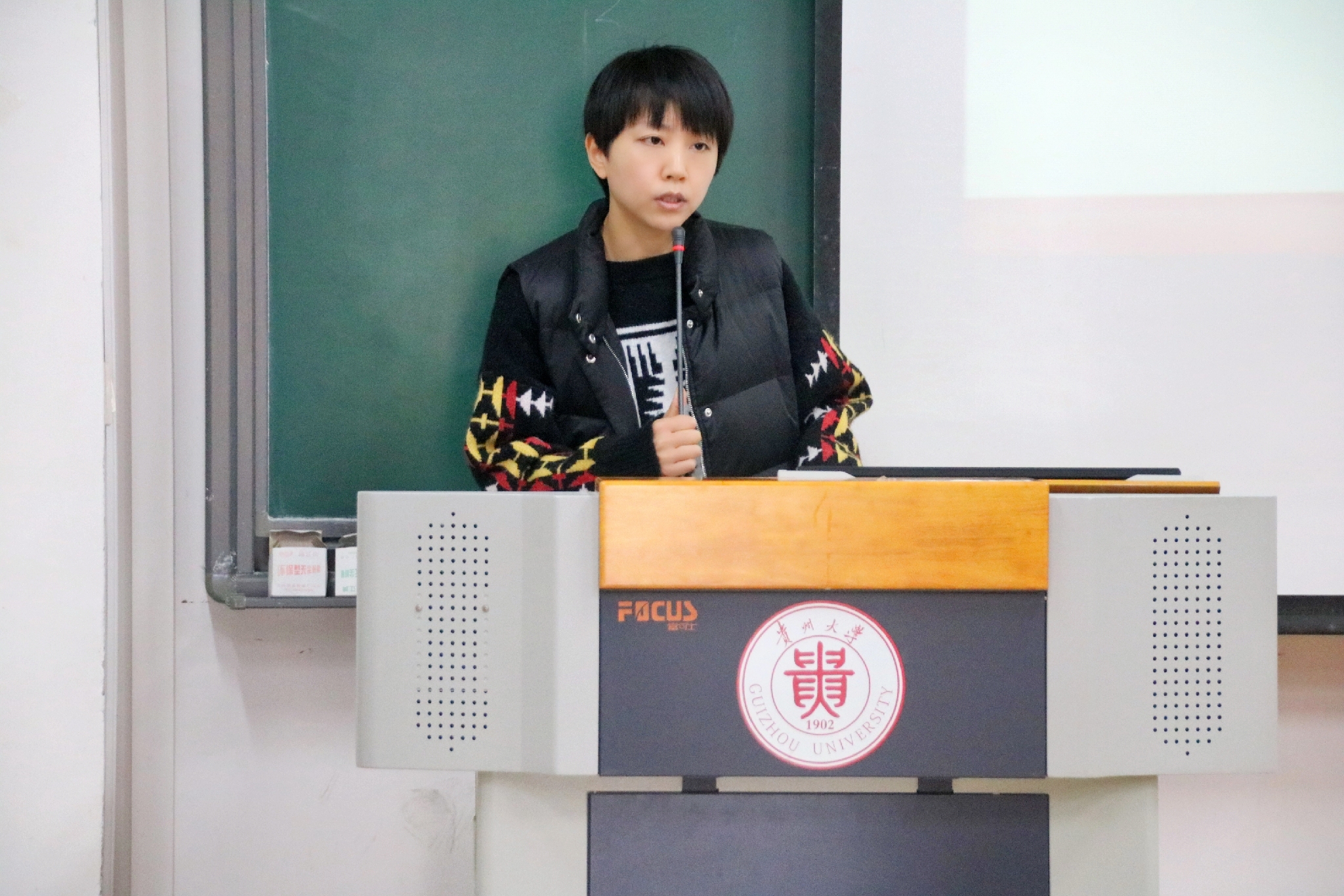 刘艳春上台讲话。她强调了宣传工作的重要性并重点说明了宣传工作在疫情期间发挥的重要作用,并对大家提出几点希望和要求:第一,希望大家练就过硬的本领,扎实基本功;第二,希望大家拥有奉献精神,要做好前期策划工作及事后宣传工作;第三,希望大家树立远大目标,为我校新媒体平台更上一层楼贡献青春力量;最后,希望大家具有全局意识,合力做好我校团学宣传工作,真正做到讲好贵大故事,传递贵大好声音。