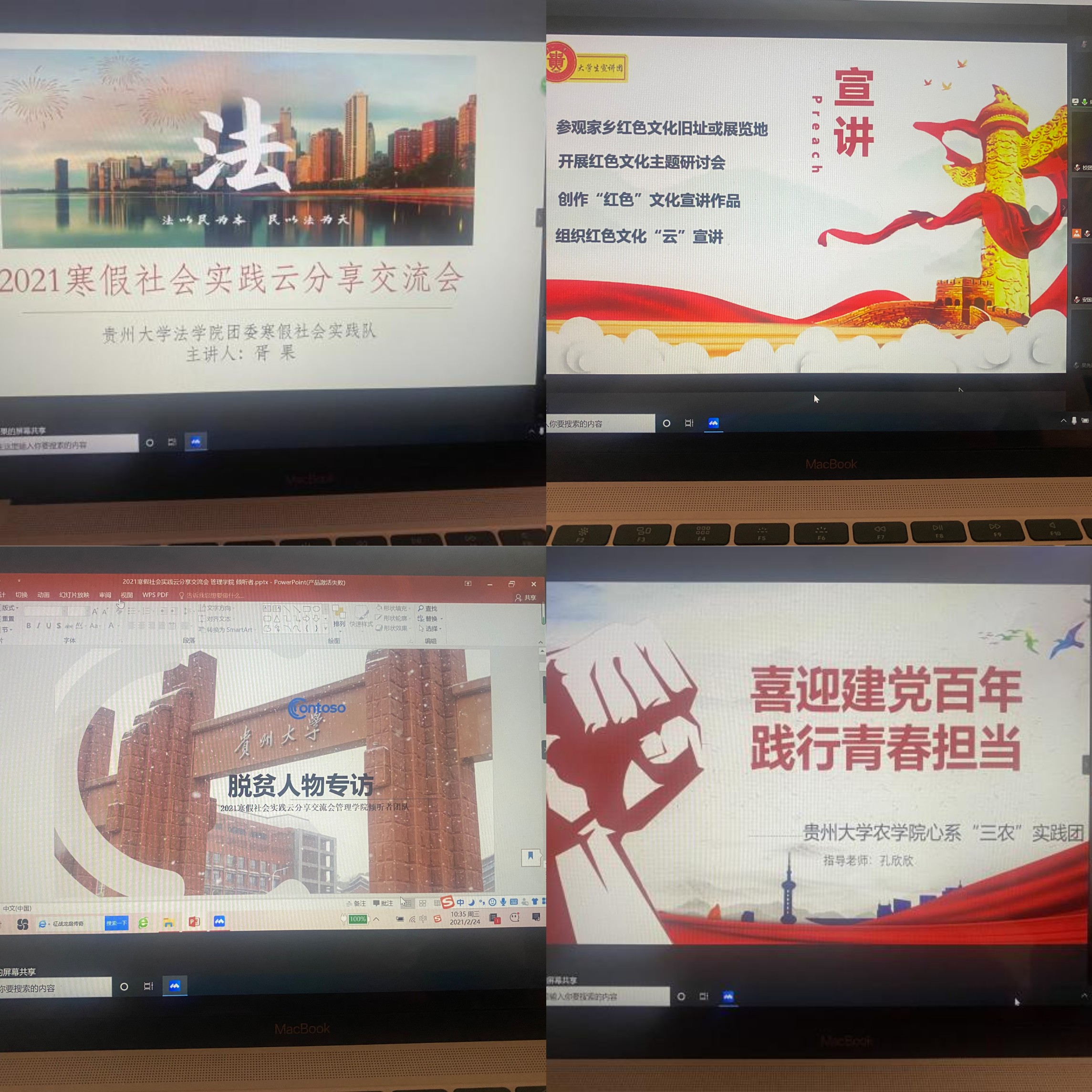 最后,校团委副书记杨晓椿总结发言,希望同学们继续在艰苦奋斗中锤炼意志品质,激发创造力,在国家“十四五”规划开局之年,在建党一百周年之际,以优异的成绩向祖国汇报。贵州大学2021年大学生寒假社会实践“云”分享交流会圆满结束。