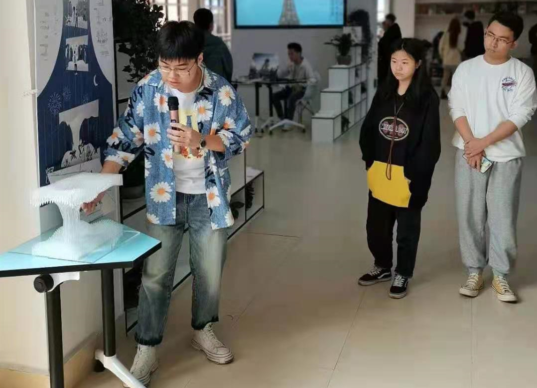 建筑与城市规划学院副院长唐洪刚(主持工作)对布展情况做了说明,详细介绍了模型特点和学院专业特色。建规182温昕同学从设计理念、结构构造、搭建意义等方面为大家详细介绍各参展作品。