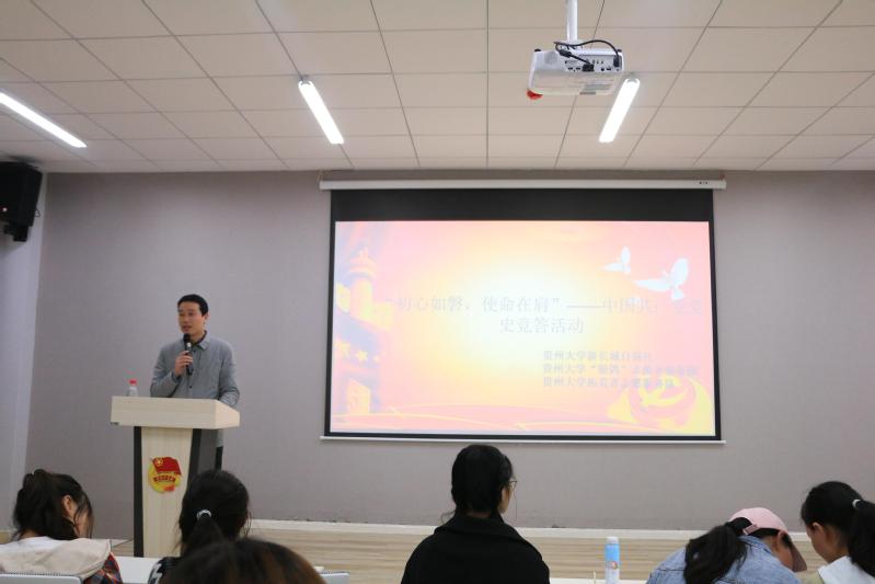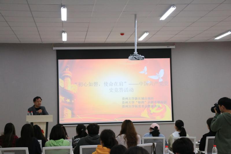 团委网站讯(记者 李婉琪 陈明昱 报道|摄影 刘明倩)为深入开展党史学习教育和“牢记殷切嘱托、忠诚干净担当、喜迎建党百年”专题教育,4月18日,由校团委主办,贵州大学新长城自强社、贵州大学“银鸽”志愿者服务团、贵州大学拓荒者志愿服务队承办的贵州大学“初心如磐,使命在肩”——中国共产党党史竞答决赛成功举行。校团委、资助管理中心老师以及120余名学生参加。