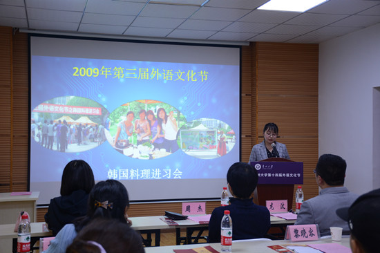 接着,外国语学院团委、学生会主席团代表陈雅华汇报了外语文化节十三届发展历程。