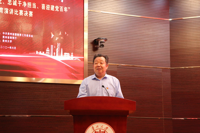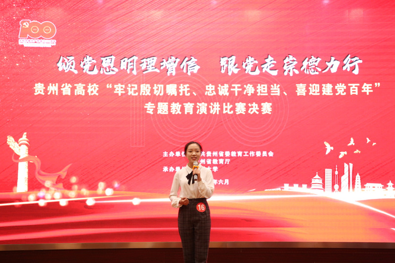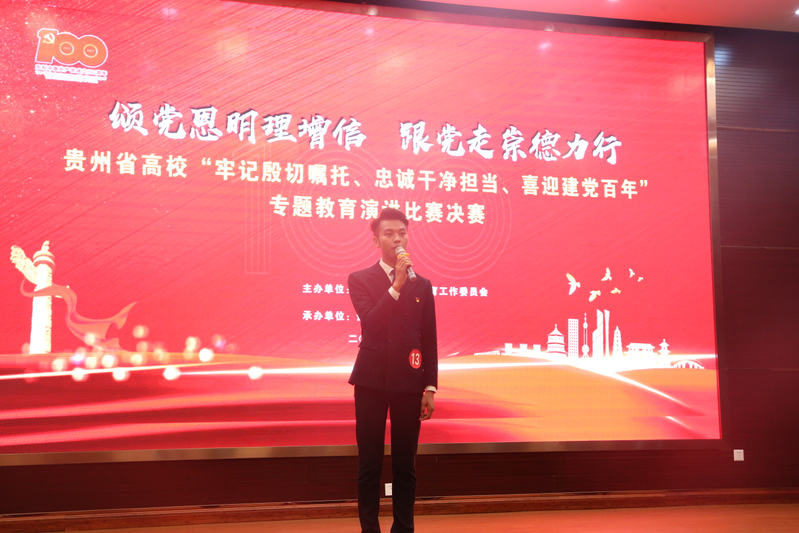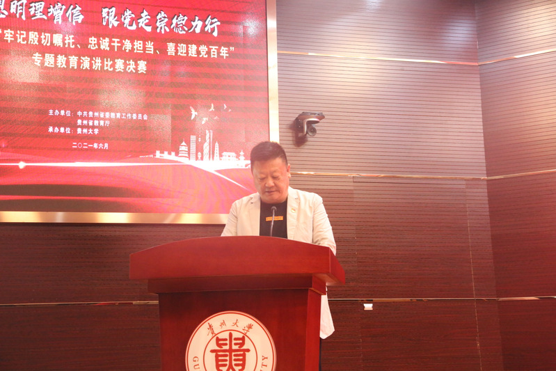 团委网站讯(记者 郝倩 袁兰 报道|摄影 刘明倩 姚一)“颂党恩明理增信跟党走崇德力行”,为深入学习贯彻习近平总书记视察贵州重要讲话精神,结合党史学习教育,让全省高校师生在庆祝中国共产党百年华诞的重大时刻,接受一次理想信念的“大洗礼”,6月21日,由中共贵州省委教育工作委员会、贵州省教育厅主办,贵州大学承办的贵州省高校“牢记殷切嘱托、忠诚干净担当、喜迎建党百年”专题教育演讲比赛决赛在我校西校区贤正楼107报告厅举行。