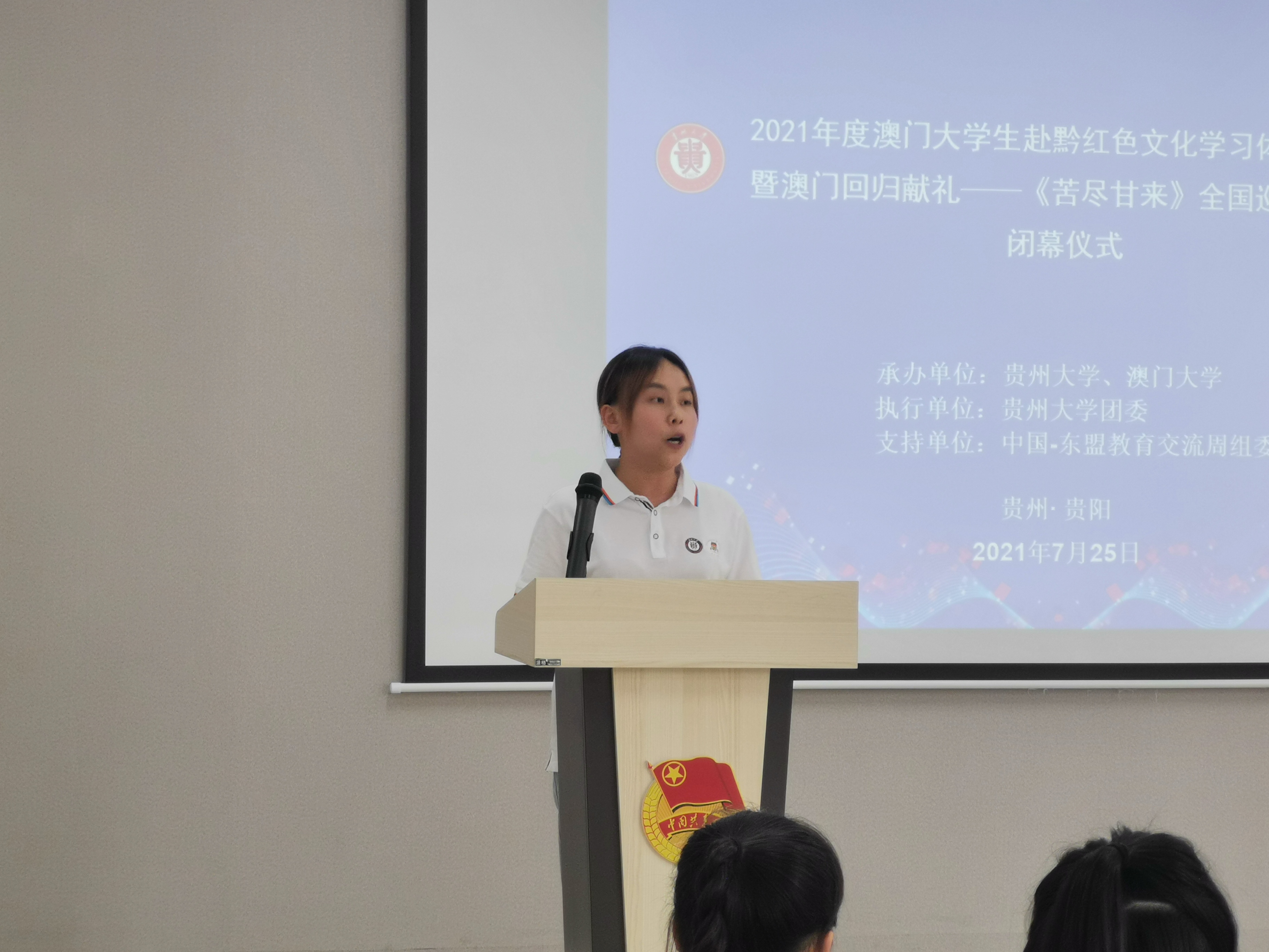 团委网站讯(记者 梁倩 报道 摄影)7月25日下午14时,由贵州大学、澳门大学联合承办的2021年度澳门大学生赴黔红色文化学习体验活动暨澳门回归献礼——《苦尽甘来》全国巡回演出闭幕仪式在雅文楼217B会议室举行。15名澳门大学学生代表、60余名贵州大学学生代表参加。