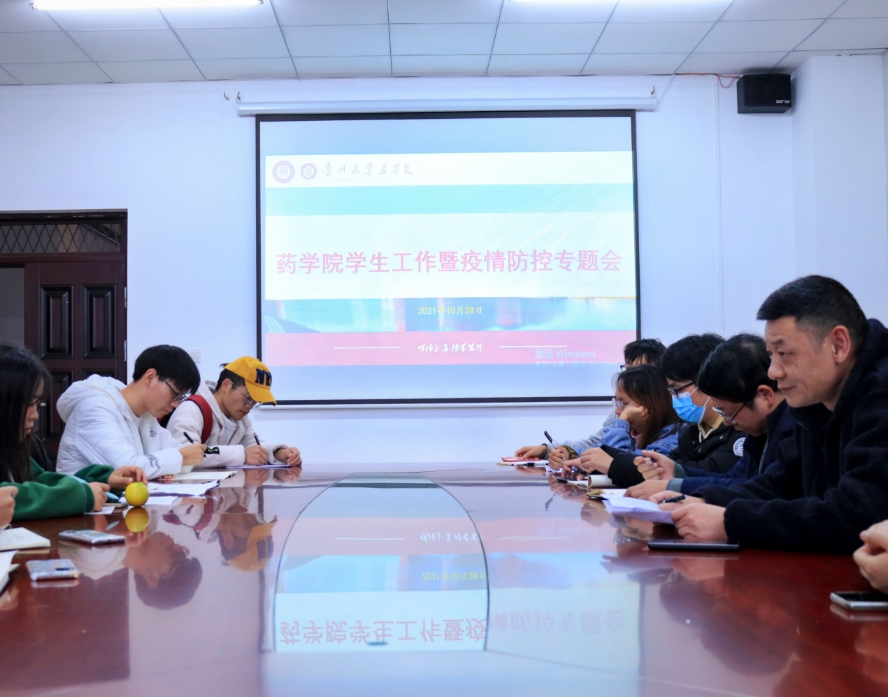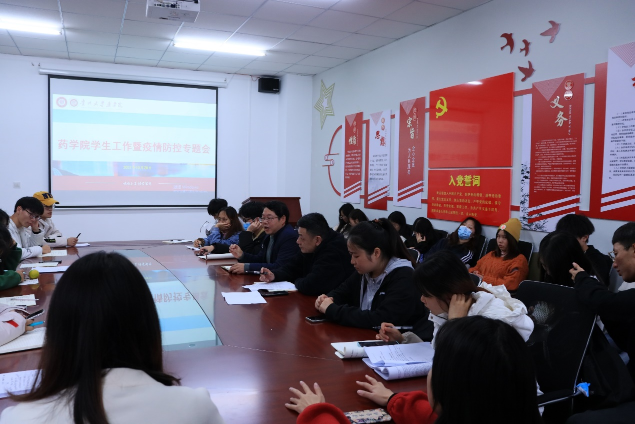 会议伊始,周雪原就药学院疫情防控工作做了以下几点安排:1、各班班长团支书要认真监督大家每天按时完成微信健康打卡,方便了解学生的身体健康状况,强调了做好健康打卡和个人防护工作的必要性和重要性。2、班上如有同学出现发烧、感冒等情况要第一时间上报学院,以便及时关心学生身体健康。3、并就疫情期间请假制度作了强调,要严格履行请假手续,建议大家非必要不出校园。会上他就加强学院学风执勤到岗情况也做了介绍,要求各班按时执勤到岗值勤。