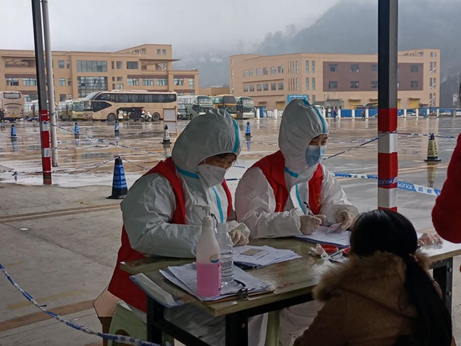 矿业学院徐庆林同学在家乡安顺有确诊病例时,果断报名成为一名疫情防控志愿者,帮助年迈的爷爷奶奶做核酸、维护现场秩序。大雪纷飞中的忙碌、凌晨三点的坚守,让徐庆林对责任与担当有了更深刻的体会;法学院张忆莲同学加入了思南县青年志愿者协会疫情防控志愿者,她穿上防护服,在长途客车站给返乡过年的人进行信息登记、测体温、查核酸报告,配合医护工作人员做核酸检测等。“一下子我就长大了呢”,张忆莲笑着说到。
