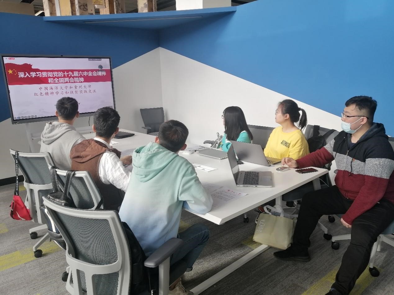 团委网站讯 (记者 杜军仙 报道 摄影)4月8日下午,中国海洋大学与我校红色精神学习和扶贫实践交流会于腾讯会议上顺利举行。参加此次会议的有中国海洋大学管理学院党务工作办公室副主任、红旗智援博士团党支部书记齐峰,我校经济学院依加创客空间负责人许绍秋,以及两校部分学生代表。本次交流会共分为六项议程。