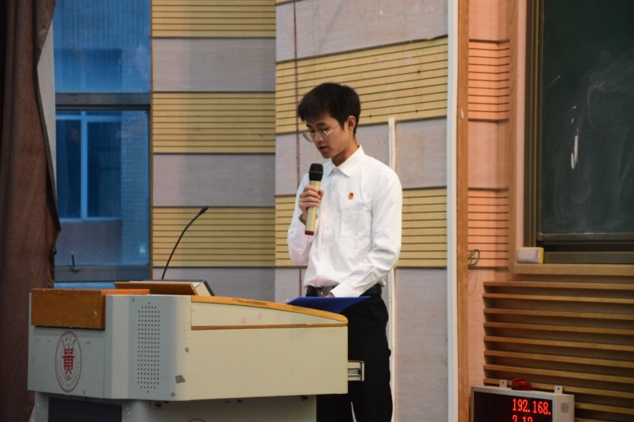 接下来,获奖代表唐猛发言。他向大家阐述爱国、民主、进步、科学的五四精神,并呼吁青年大学生们要珍惜年华,努力学习,加强道德修养,培养科学家精神,为美好的明天奋斗。