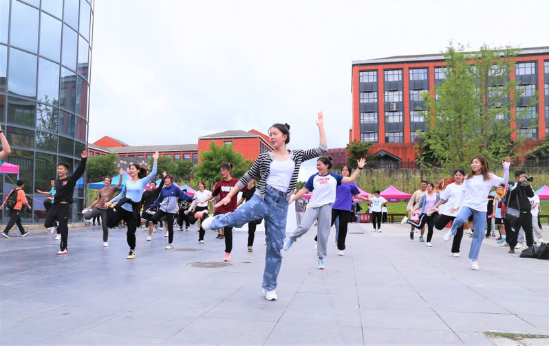 团委网站讯(记者 王浩 严嫣 报道|严嫣 摄影)为更好地普及心理健康知识,帮助大学生认识自己,关注自己的心理健康和成长,营造温暖和谐的校园环境。5月25日中午,我校在西区雅文楼广场举办“以敞开心灵一片天,放飞心理健康梦”的大型心理广场活动,体育学院以“心理健康一起舞”为主题参与此次活动。