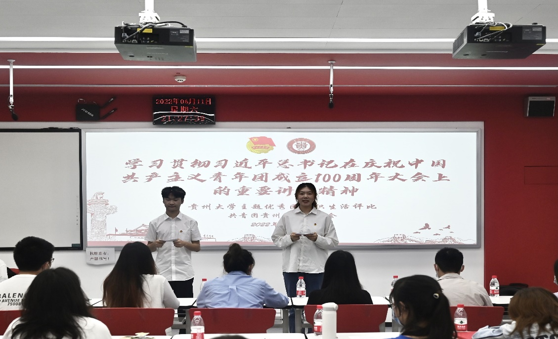 团委网站讯(记者何良友报道|摄影 罗世月 )6月11日,我校“学习贯彻习近平总书记在庆祝中国共产主义青年团成立100周年大会上的重要讲话精神”主题优秀团组织生活评比在西校区明俊楼237报告厅举行,近50名学生参加了本次活动。