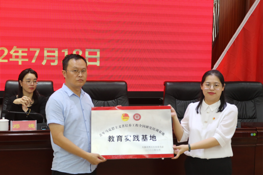 团遵义市委副书记邓婕表示贵州大学在苟坝会议陈列馆建立“青马工程”教育实践基地是校地合作的有益模式,希望充分发挥基地的作用,组织更多的优秀大学生到遵义开展学习实践活动。