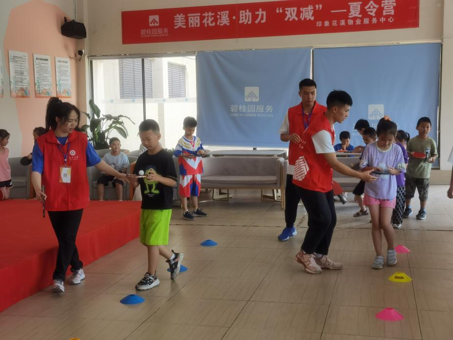 (图为“青青花溪 助力双减”活动中实践队员与小朋友们上乒乓球课程)