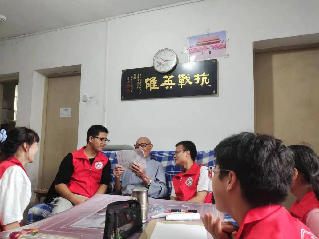 (图为红言咏“乡”传实践队看望慰问110岁高龄的抗战老兵许德胜爷爷)