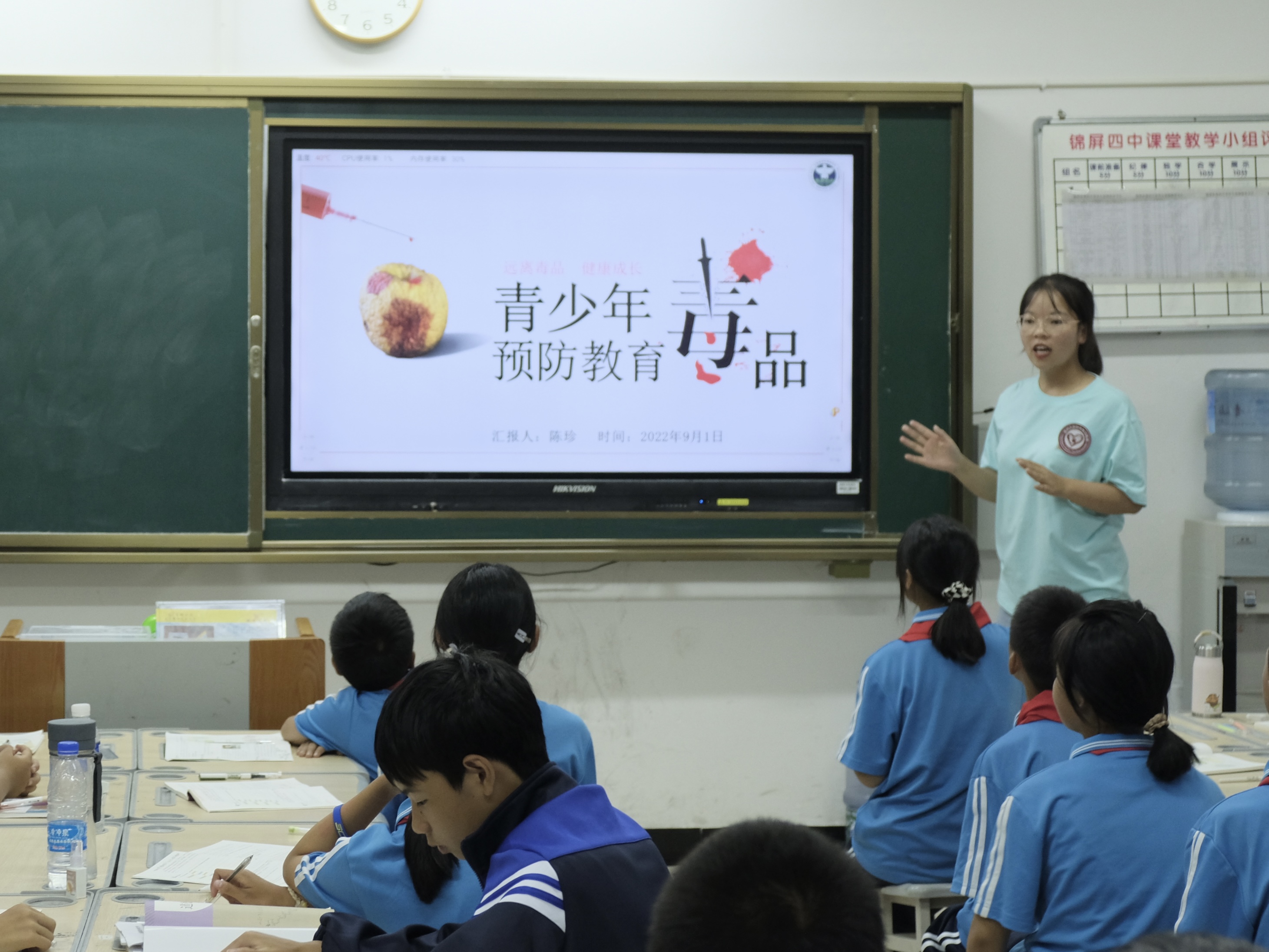 (图 陈珍向同学们播放禁毒宣传片,树立对毒品的正确认识)