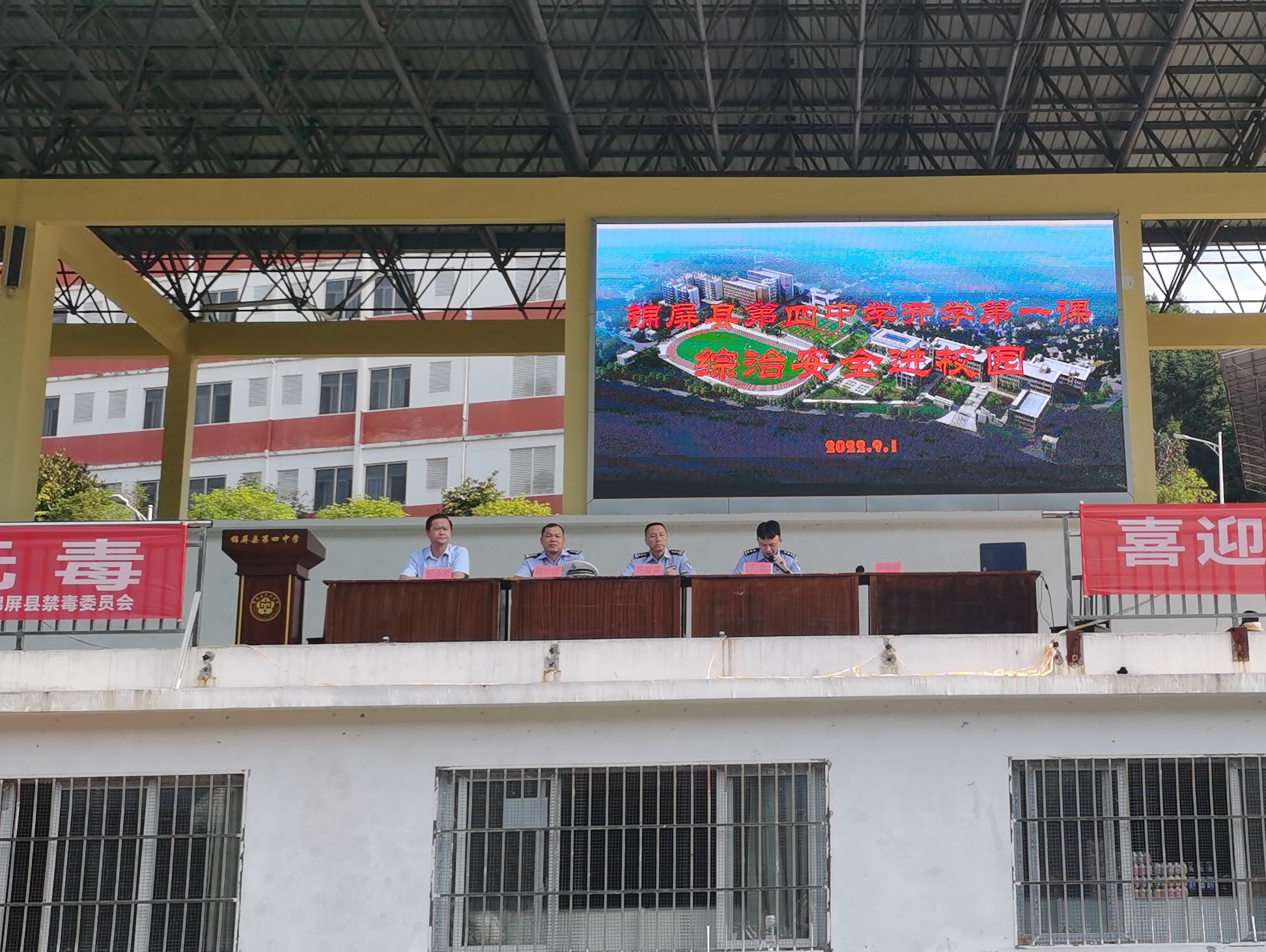 三江镇派出所副所长、第四中学法制副校长范鑫给全校师生做关于综治安全、预防诈骗、预防校园欺凌、防性侵、防溺水等相关知识的普及;锦屏县第四中学法律顾问彭泽东做法制知识宣讲;锦屏县公安局交通警察大队杨仁海同志整理了多起初中生违反交通法规所引发的车祸惨案,以视频的形式告诫同学们要严格遵守交通法则,要学会珍惜生命,养成自觉遵守交通规则的好习惯。