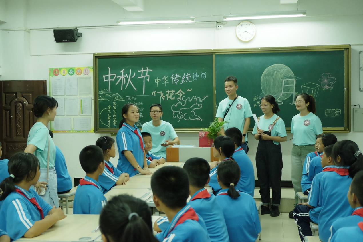 团委网站讯(记者李雨涵徐昕然报道|摄影李雨涵)“小时不识月,呼作白玉盘”“露从今夜白,月是故乡明”……为提升学生优秀传统文化素质教育,激发爱国主义情怀,9月8日晚,我校第24届研支团锦屏支队在锦屏县第四中学七年级(5)班开展吟诵鉴赏中华经典诗文活动,以中华诗词“飞花令”活动喜迎中秋佳节。