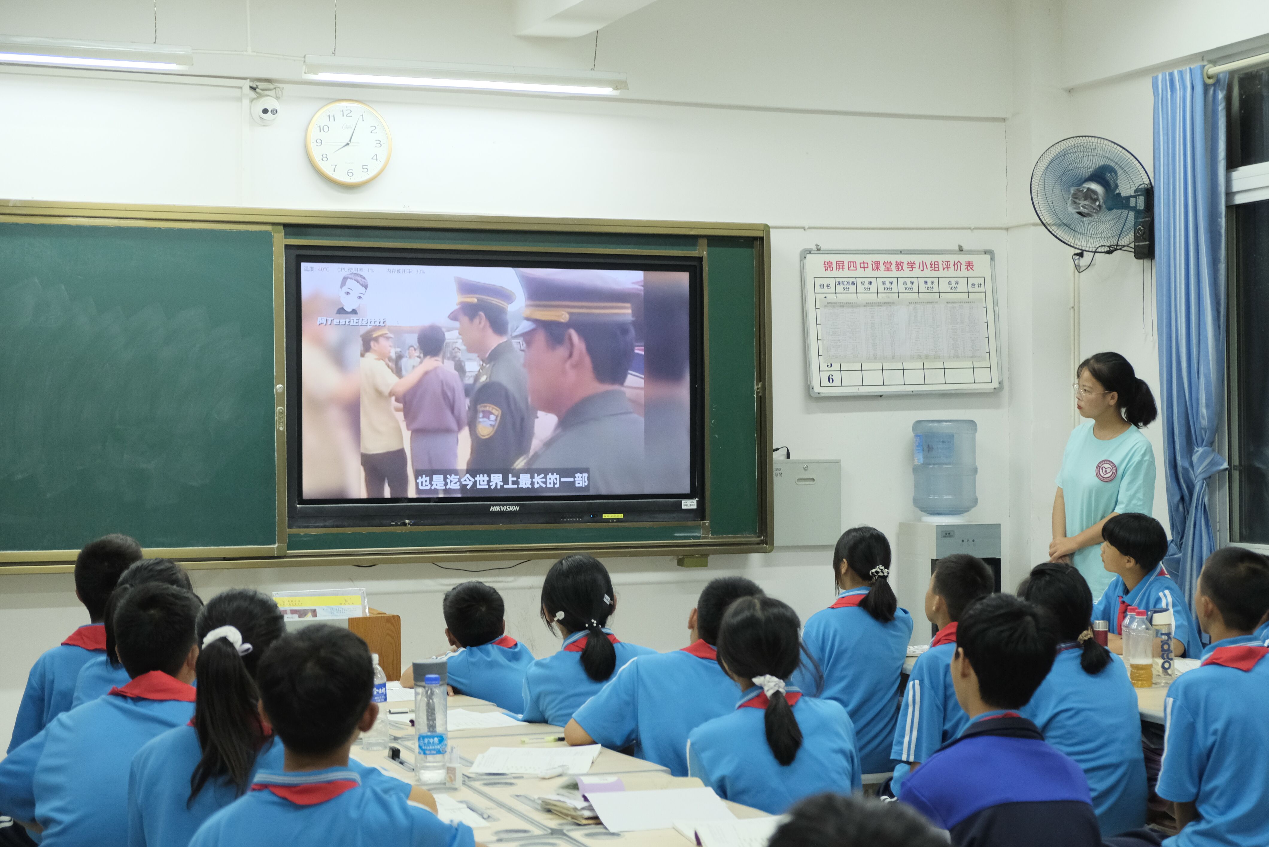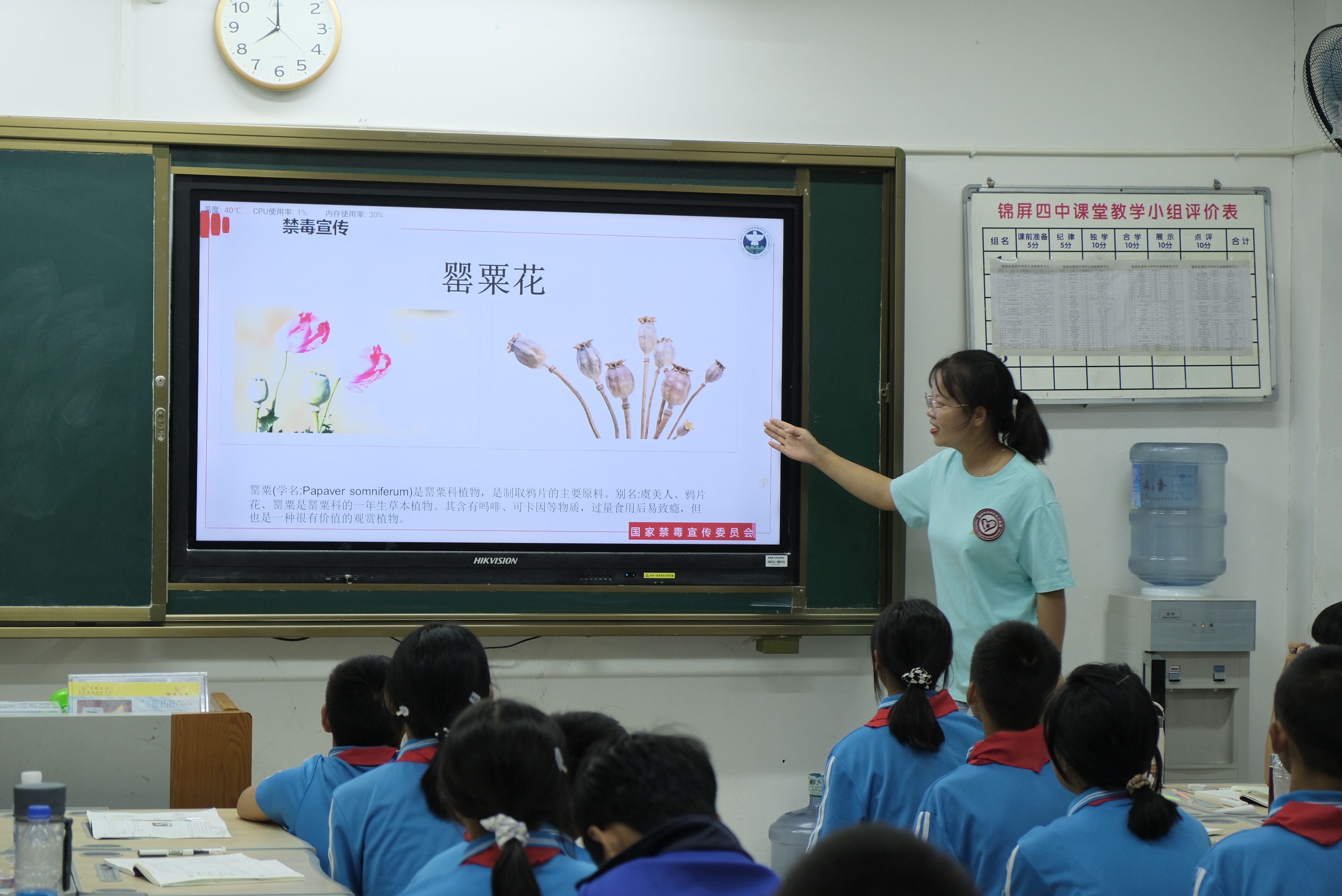 (图陈珍向同学们播放禁毒宣传片,树立对毒品的正确认识)