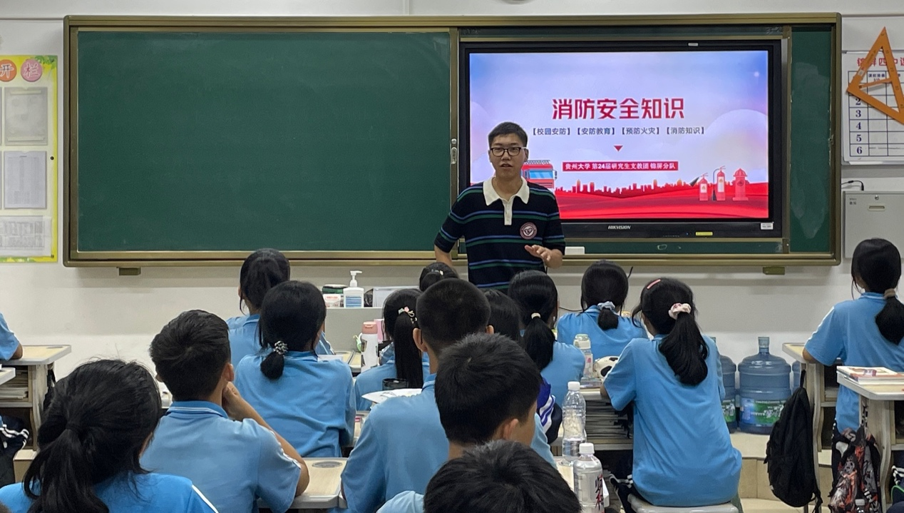 (图我校第24届研支团锦屏支队成员闫梓宁开展消防安全知识主题班会)